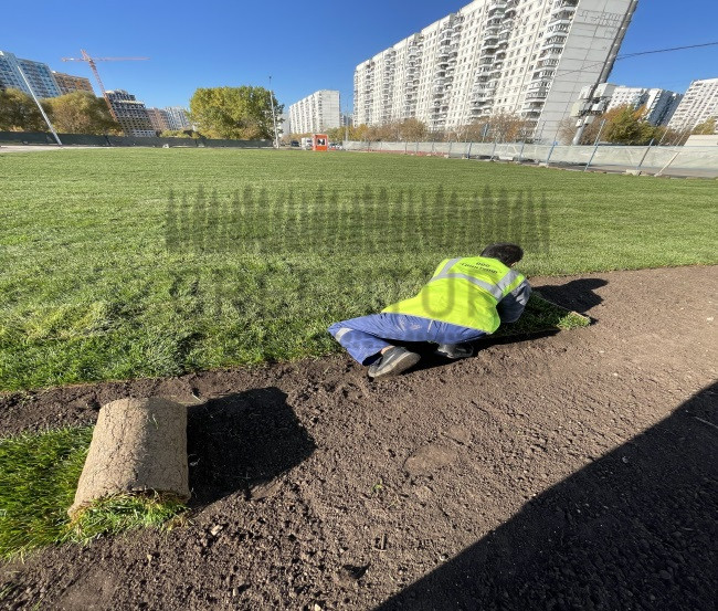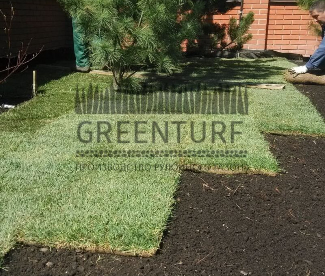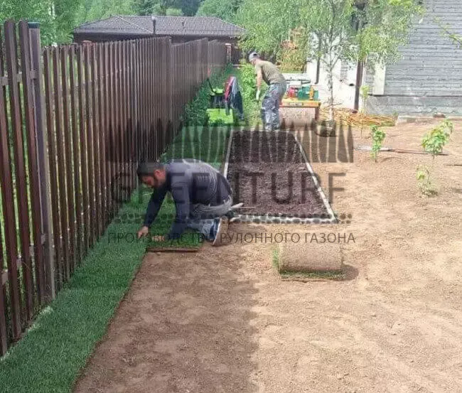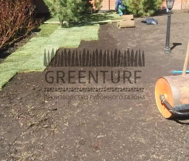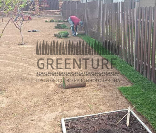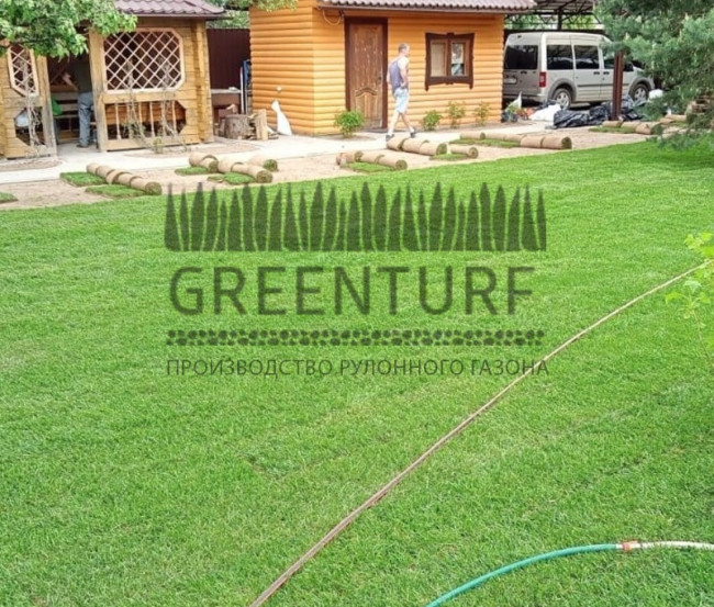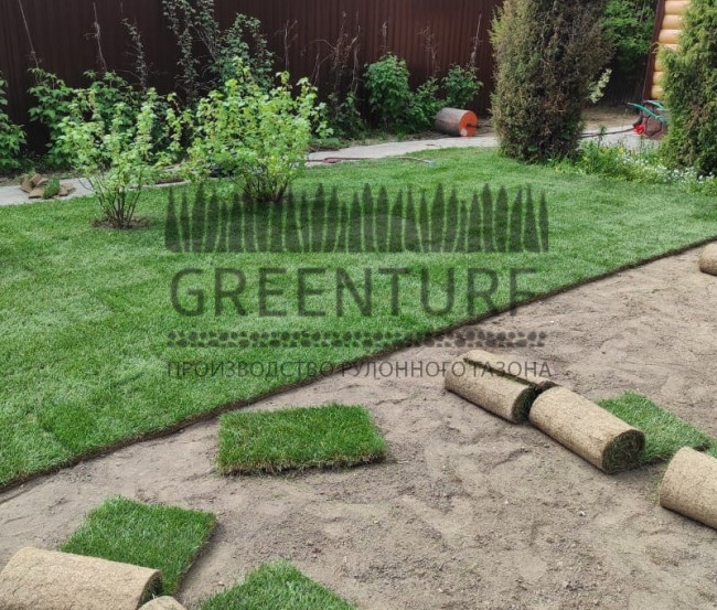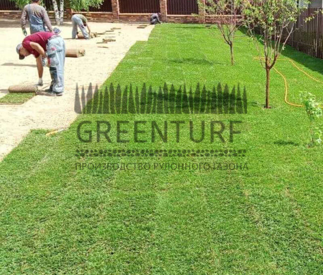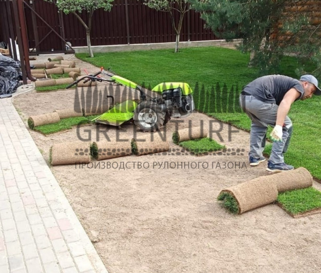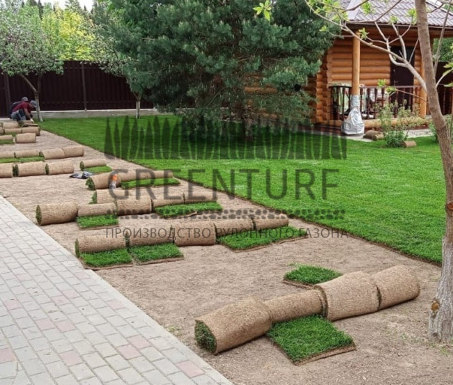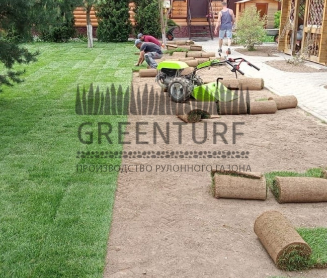 5. Привозим газонную траву оптом, качественно раскатываем рулоны.