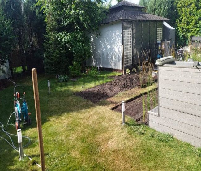 4. Подготавливаем почву для укладки газона — рыхлим, вносим удобрения.